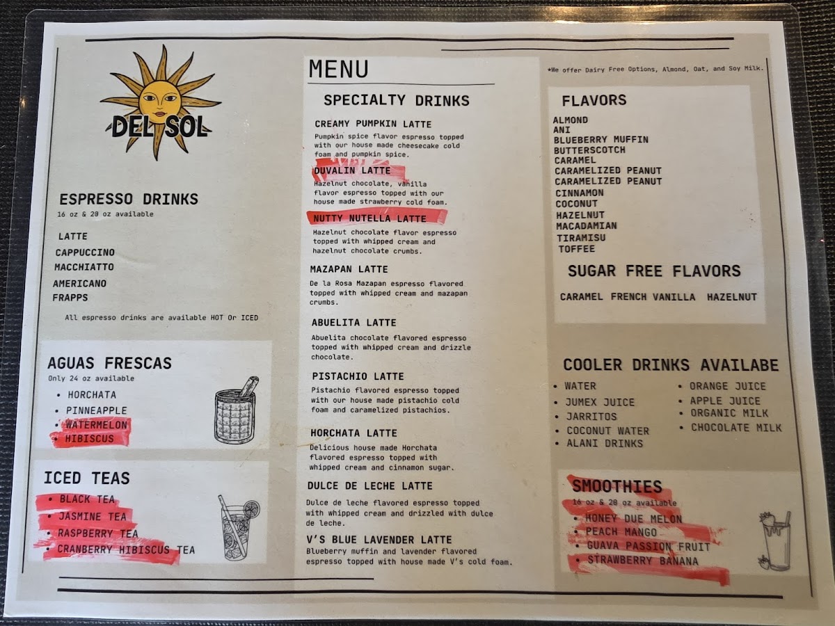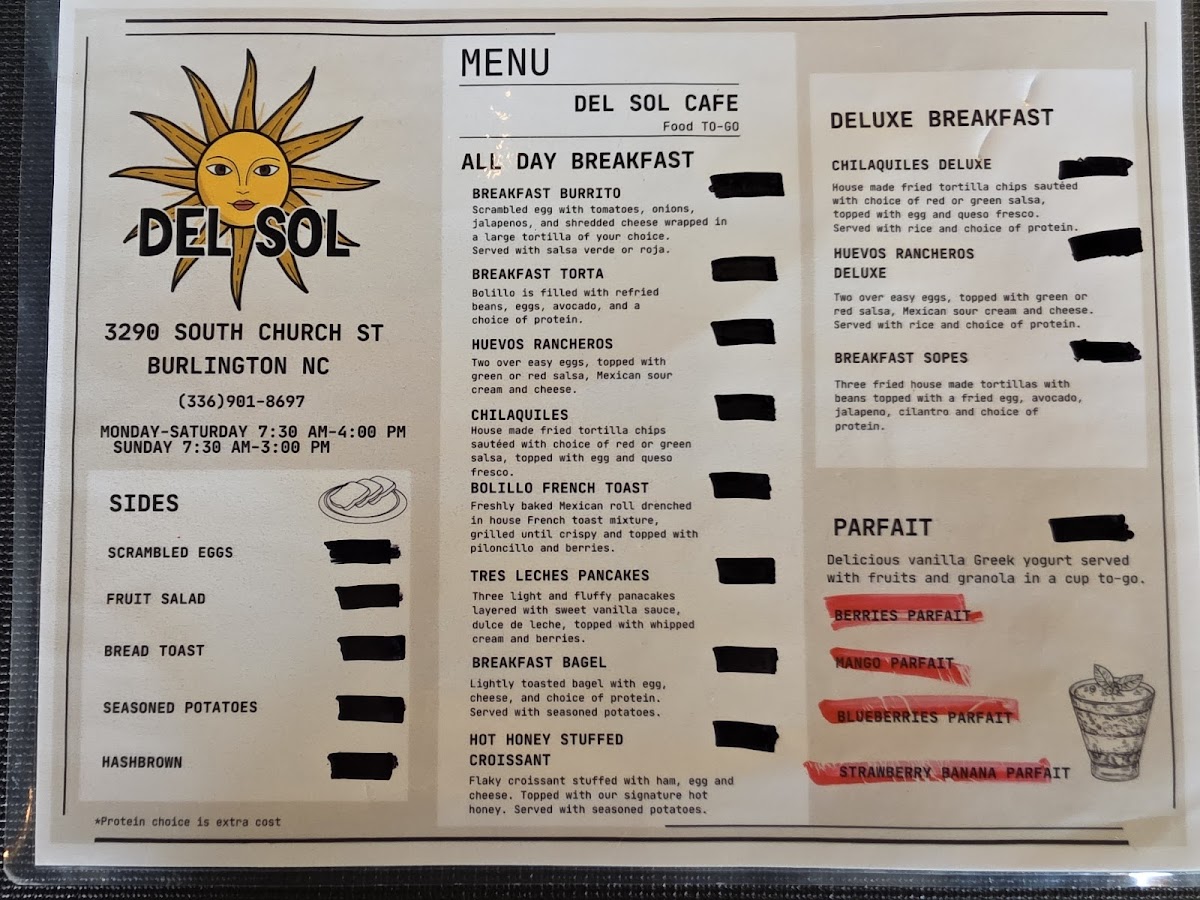 Del Sol Cafe Menu